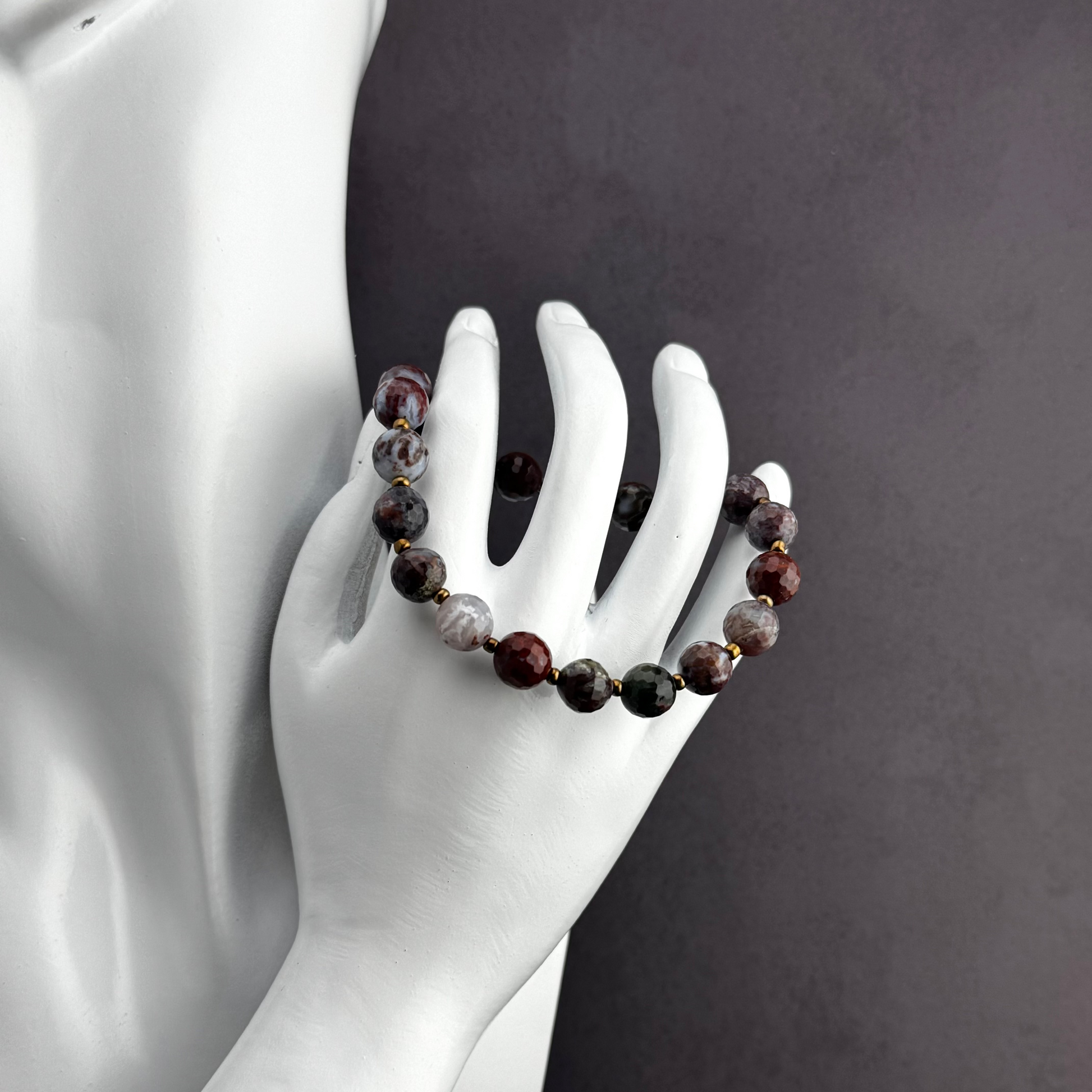 Expertly-crafted with stunning Red Lightning Agate Gemstones and Bronze Seed Beads, this Bracelet elevates any outfit. Its stretch design provides a comfortable fit, perfect for everyday wear. Enhance your style with the natural beauty and healing properties of agate.