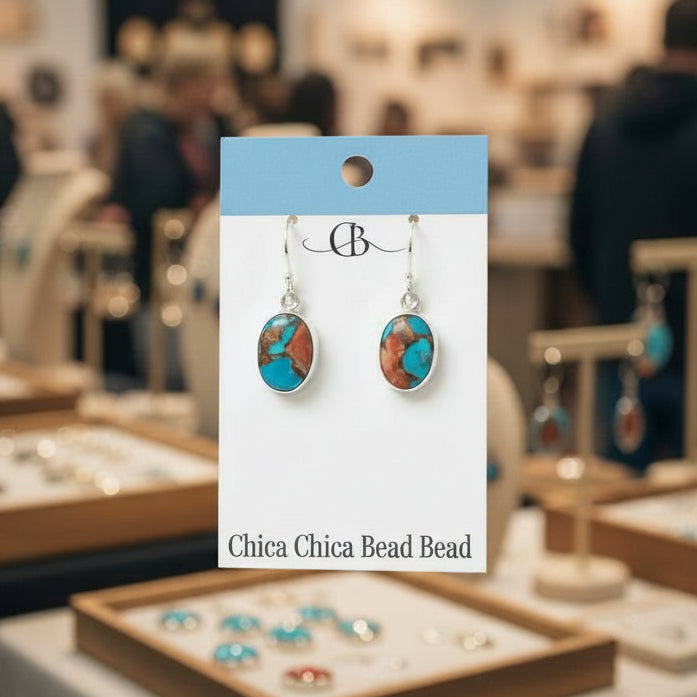 Earrings | Spiny Oyster Gemstones set in 925 Sterling Siver | 1.25"