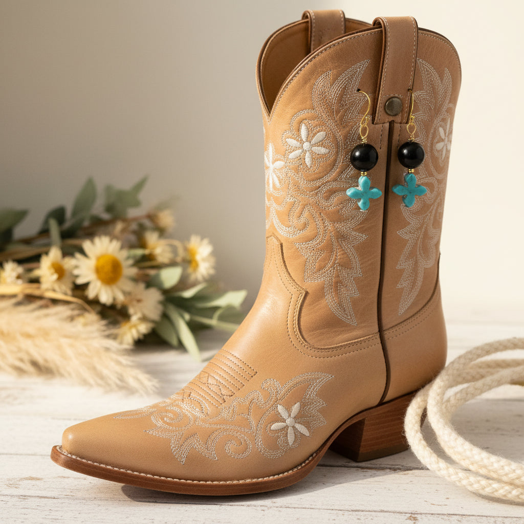 Turquoise meets onyx in these 1.75" stunners that bring Southwest and Boho flair to any vibe. Hand-designed by CiCi, each pair features genuine magnesite turquoise and sleek onyx gemstones anchored in gold-plated findings that catch the light just right. Whether you're channeling boho wanderlust or desert-inspired cool, these earrings deliver that perfect blend of earthy elegance and modern edge. A little piece of handcrafted magic for your everyday rotation.