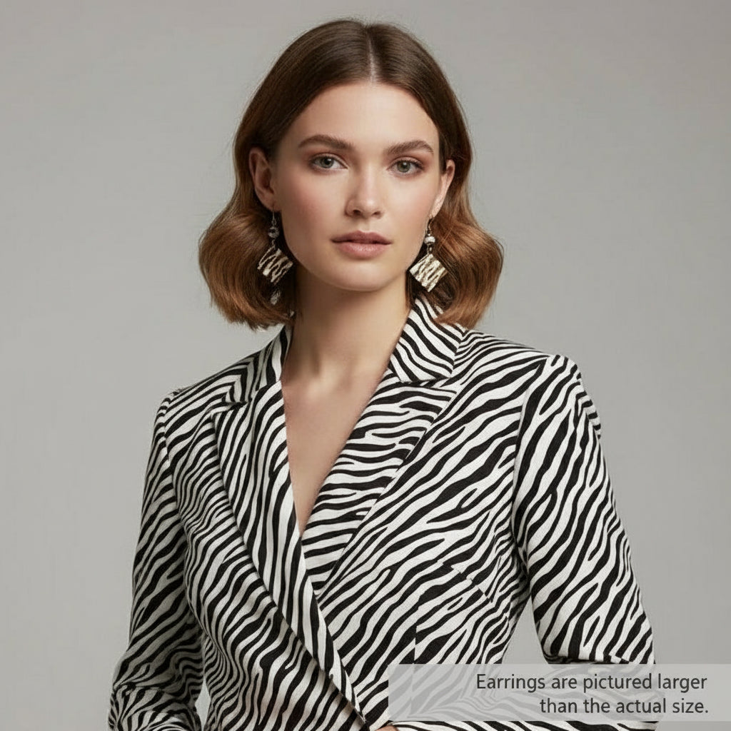 These earrings feature a unique Zebra design on a square shape. The intricate zentangle patterns are expertly wood-burned onto the earrings, adding a touch of elegance. Each earring is adorned with a beautiful zebra agate gemstone, designed by CiCi.